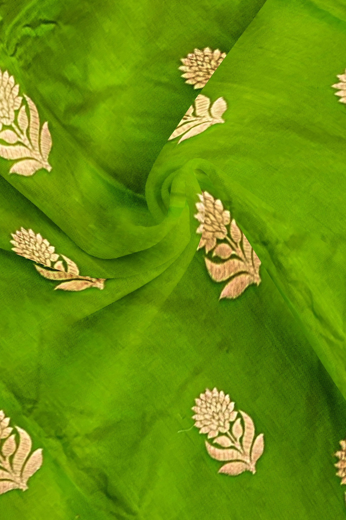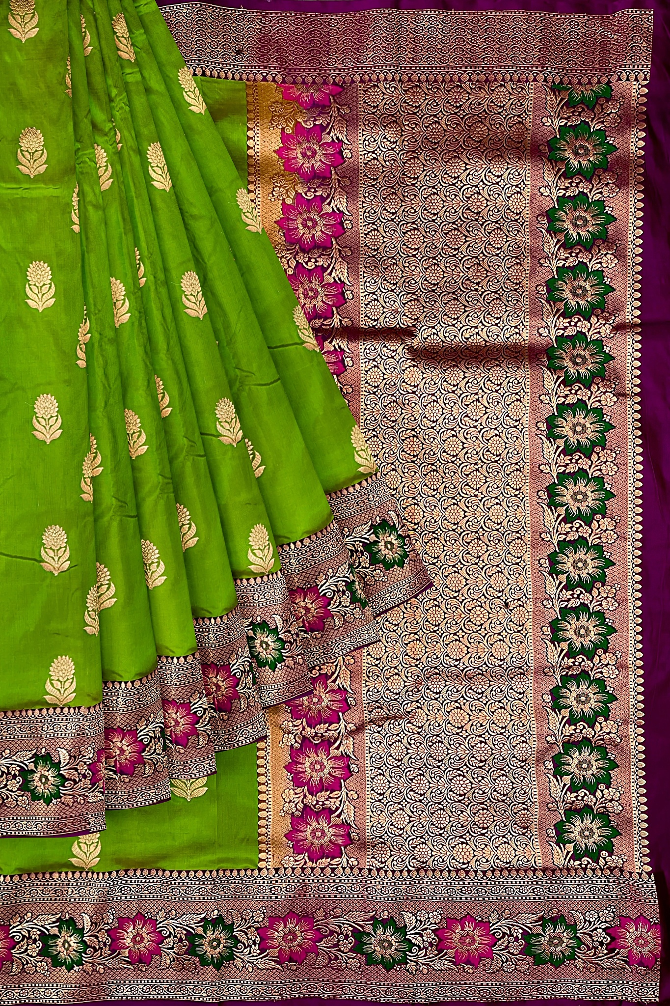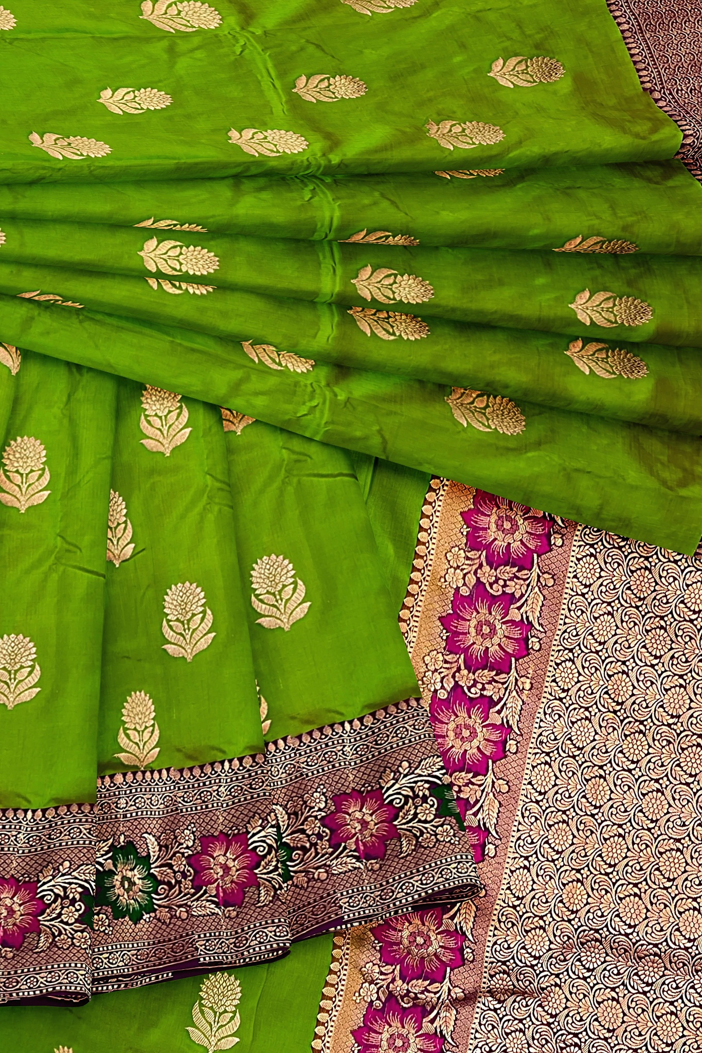 Neon green Meenakari Katan Silk Handloom Banarasi Saree