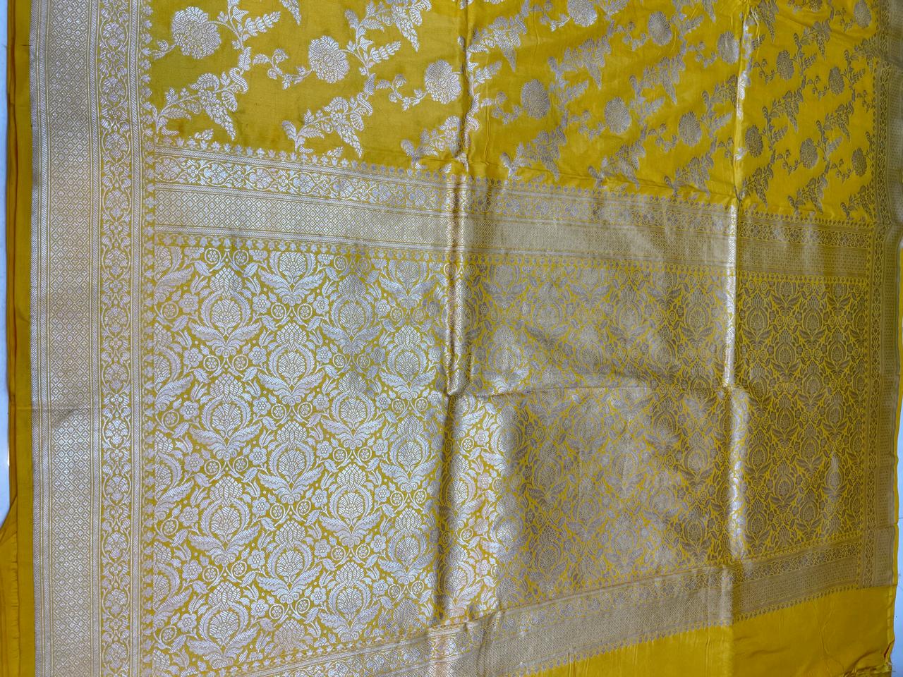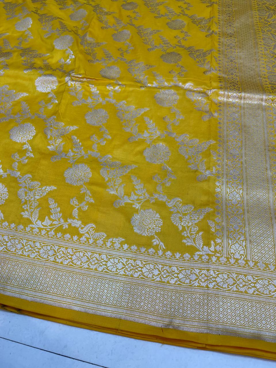 Elevate your grace with our Banarasi Uppada Saree in a regal shade of Yellow. This exquisite ensemble seamlessly blends the traditional artistry of Banarasi weaving with modern allure. Adorned with intricate zari work and delicate motifs, the lightweight