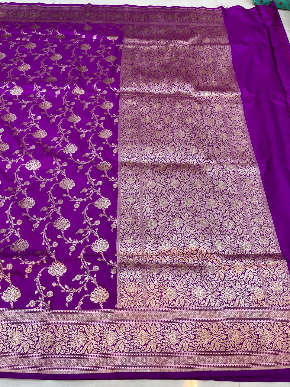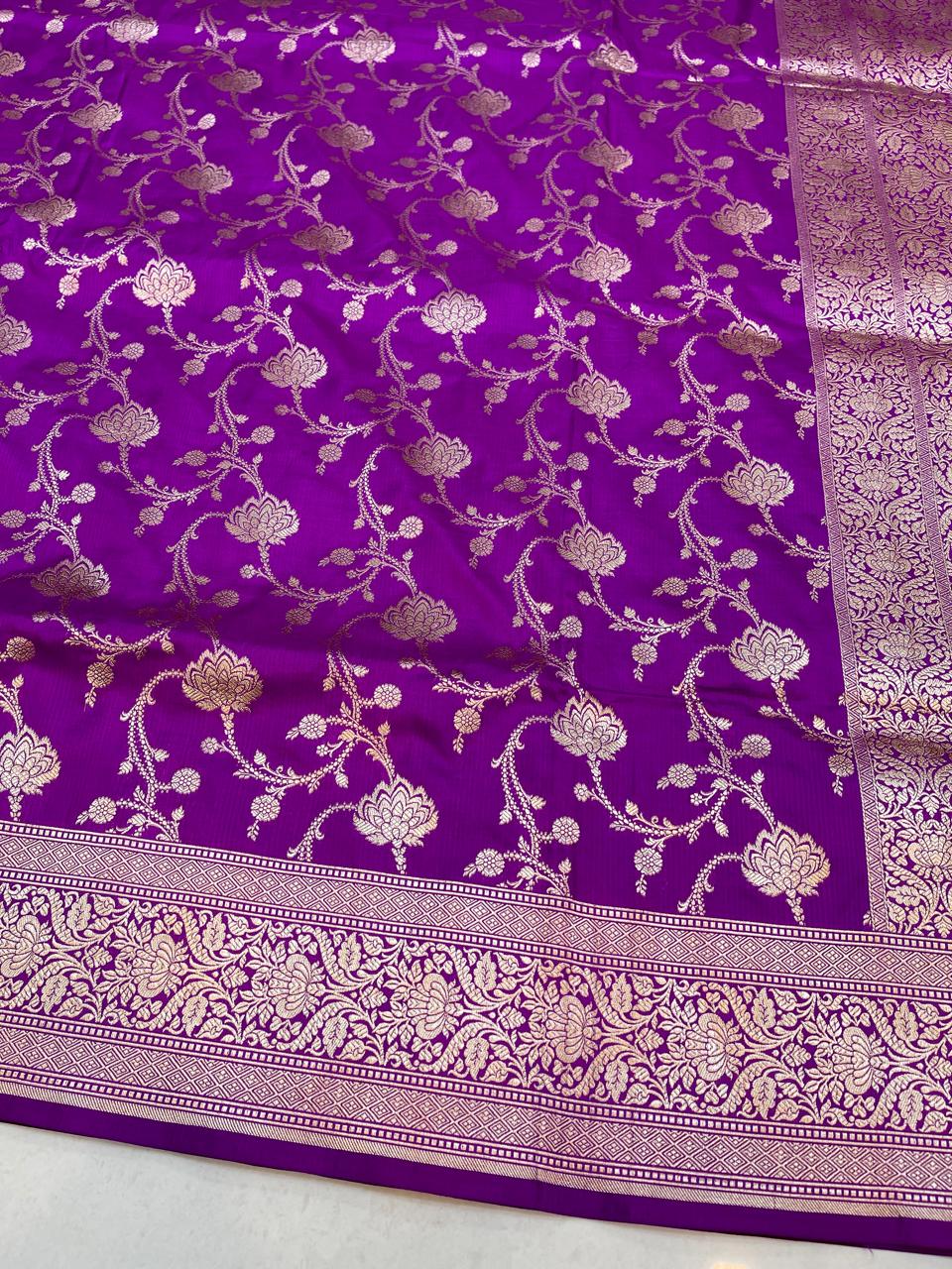 Elevate your grace with our Banarasi Uppada Saree in a regal shade of Purple. This exquisite ensemble seamlessly blends the traditional artistry of Banarasi weaving with modern allure. Adorned with intricate zari work and delicate motifs, the lightweight
